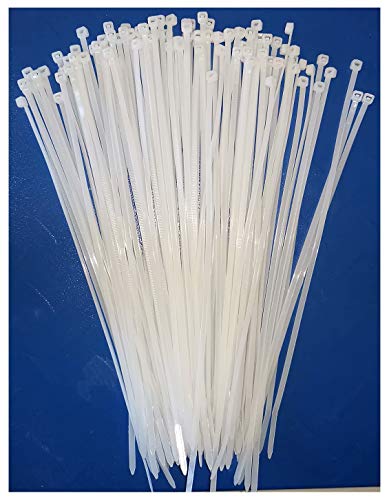 Fascette per cavi bianche 250 mm x 4 mm (confezione da 100), resistenti con cerniera trasparente con resistenza alla trazione di 18 kg, fascette autobloccanti in plastica di nylon per ufficio