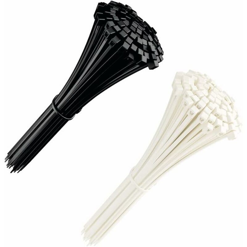 200 pezzi fascette 200 mm x 2,5 mm, colore bianco e nero, resistenza alla trazione 8 kg, diametro massimo di serraggio 53 mm FATTO PER DURARE: realizzato in nylon extra forte 6-6, le fascette sono in grado di per resistere alle condizioni climatiche più difficili (temperatura di esercizio da -40°C a +85°C). Ogni fascetta ha un meccanismo autobloccante molto resistente che non si deteriora nel tempo. Per maggiori dettagli tecnici, fare riferimento alla descrizione dell'articolo. MULTI USI: ideale per il fai da te, il giardinaggio, la conservazione dei cavi, in azienda oa casa. Le nostre fascette per cavi sono acclamate da privati, appaltatori e produttori di tutto il mondo!