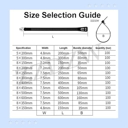 Fascette Cavi Riutilizzabili 100 Pezzi Fascette Elettricista 300mm 400mm Professionali Fascette Plastica Per Cablaggio,Fascette Per Cavi Riutilizzabili,Fermacavi Stringicavo ( Color: Black, Size: 6