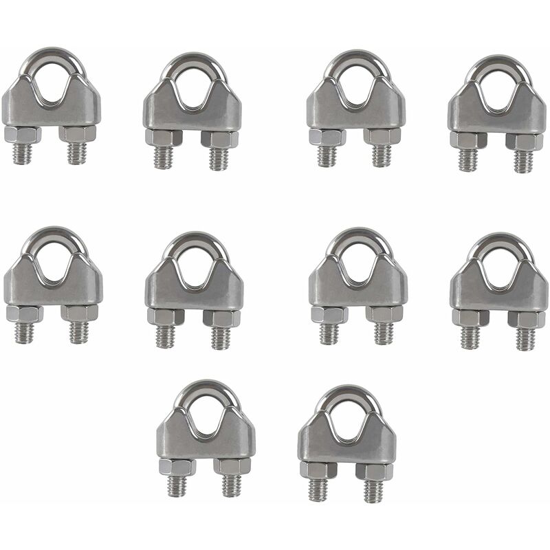 Materiale: fascette per cavi con giogo in acciaio in acciaio inossidabile 304 per la massima resistenza alla corrosione, resistenza all'umidità e durata nel tempo. Dimensioni: quantità: 10 pezzi, peso: 248 g, forniamo dimensioni diverse per esigenze diverse.Le informazioni dettagliate sulle dimensioni sono mostrate nell'immagine.Si prega di fare riferimento all'immagine per scegliere la taglia adatta. Caratteristica : Fascetta fermacavi in acciaio inossidabile 308 Composta da bullone a U, sella forgiata e due dadi. I due strati di cavo sono inseriti nel bullone a U e fissati in posizione per una connessione impermeabile. I fili antiscivolo al centro della sella aumentano efficacemente l'attrito Filettatura interna a forma di U antiscivolo, aumenta efficacemente l'attrito;