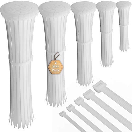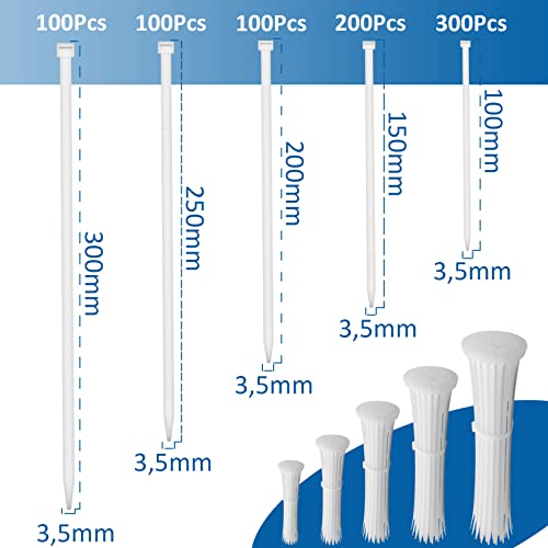 Fascette Elettricista Bianche Fascette Plastica — 800 Pezzi Fascette Stringitubo Plastica Nylon Cavi Stringicavo 100/150/200/250/300 mm Fascette Plastica Fermacavi