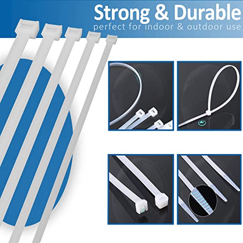【800 pezzi & varie dimensioni】800 pezzi Fascette elettricista bianche, tra cui lunghezze 100 mm (300pezzi), 150 mm (200pezzi), 200 mm (100pezzi), 250 mm (100pezzi), 300 mm (100pezzi) soddisfano le tue esigenze di dimensioni diverse