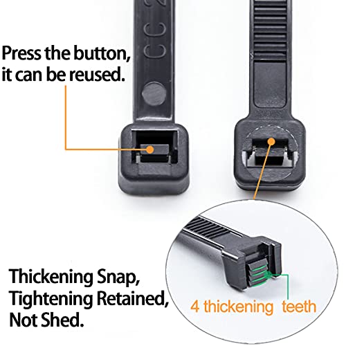 Design autobloccante: il meccanismo di fissaggio è altamente affidabile e si blocca in posizione molto sicura, bloccando i denti fermando la fascetta alla lunghezza desiderata.