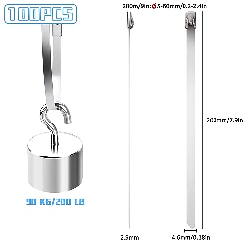 Fascette Metalliche Autobloccanti Fascette in Acciaio Inox per Fasci Cavi,Manutenzione del Giardino e Tende Sole 4,6 * 200 mm 100 Pezzi