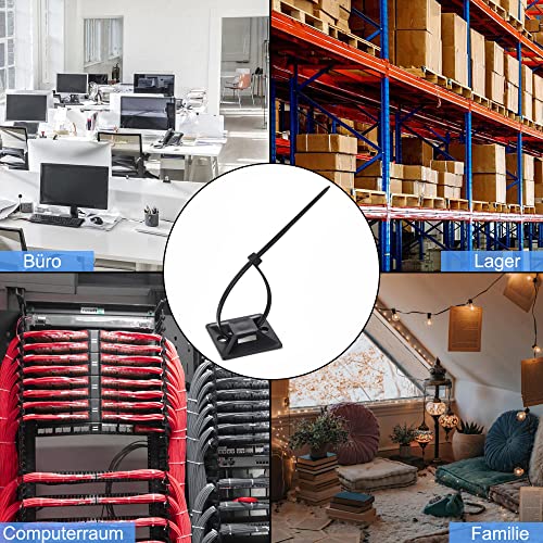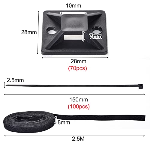 100 fascette stringicavo nero, 70 pezzi grandi autoadesive (2,8 cm x 2,8 cm), 2,5 m in velcro, riutilizzabili possono essere tagliati liberamente