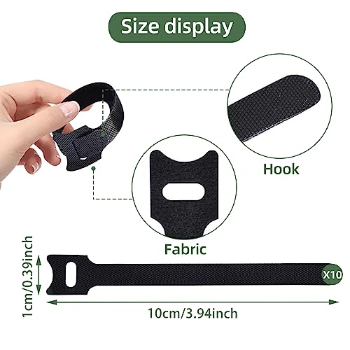 Fascette stringicavo in velcro, nero, 100 pezzi, riutilizzabili, in nylon, regolabili, 10 cm, per cavi TV, bicicletta