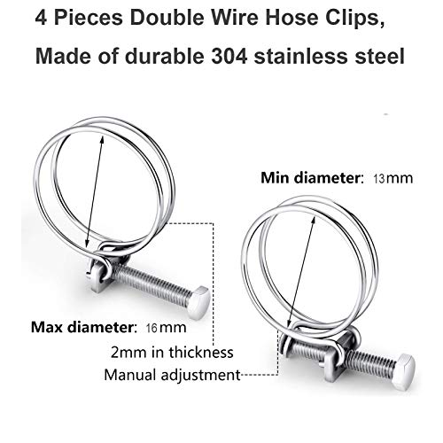 4 fascette stringitubo a doppio filo, regolabili in acciaio inox 304, per tubi da 13-16 mm
