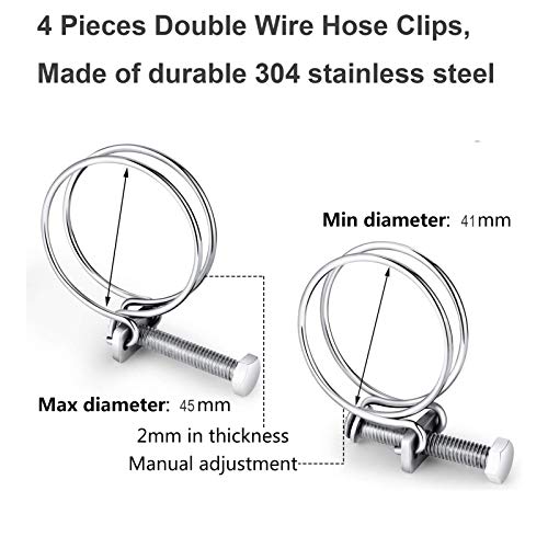 4 fascette stringitubo a doppio filo, regolabili in acciaio inox 304, per tubi da 41-45 mm