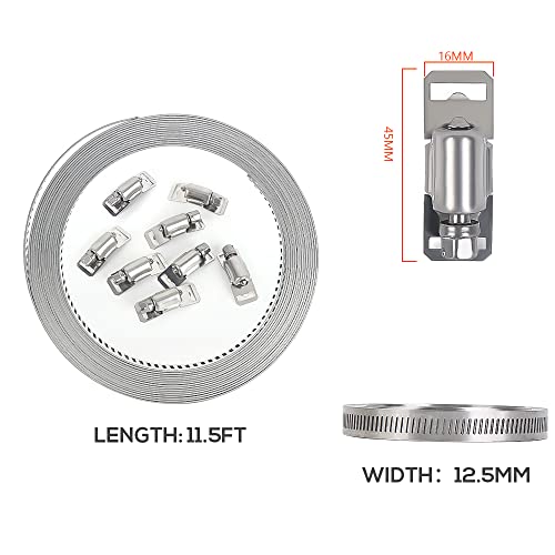 Fascetta stringitubo più lunga: la lunghezza totale del nastro per fascette stringitubo in acciaio inox è di 11,5 piedi, adatta per tagliare e ottenere la tua lunga fascetta stringitubo grande in diverse dimensioni, come 12 pollici, 14 pollici, 16 pollici e così via