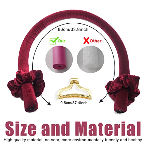 Fascia arricciacapelli senza calore, per capelli medio-lunghi, in morbida gomma e seta, per acconciature fai da te, da usare anche la notte mentre dormi (rosso scuro)