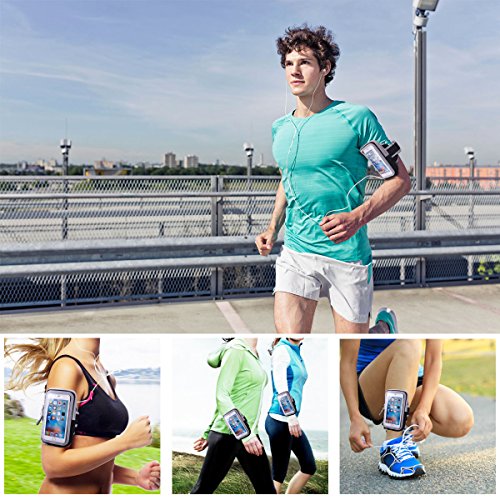 Fascia da braccio porta cellulare, Iegeek Sweatproof bracciale Doule borse per iPhone 7 Plus/6 Plus/6 Plus, Samsung Galaxy S7/S6/S5, HTC, Sony Xperia, Blackberry, Huawei smartphone fino a 14,5 cm - Touch Screen/striscia riflettente/auricolare foro/lunga cintura regolabile per corsa ciclismo allenamento