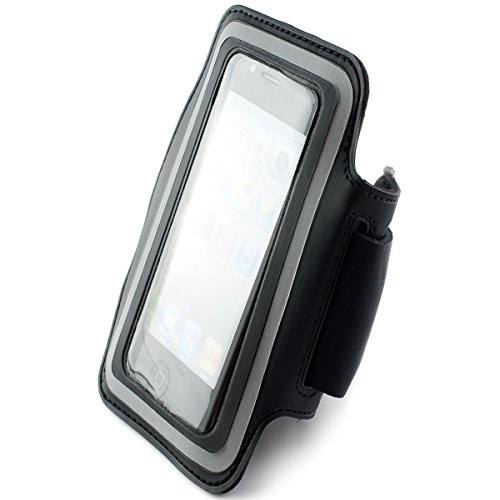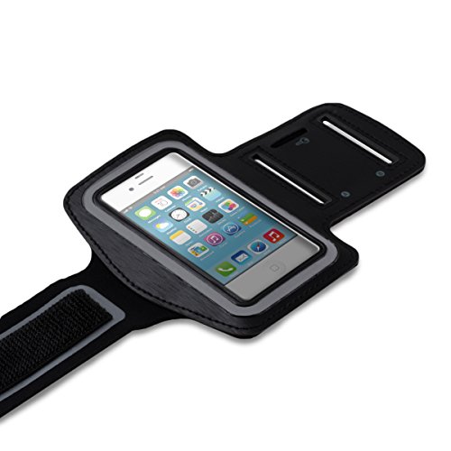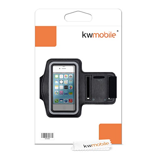 Fascia da braccio per lo sport e il jogging per Apple iPhone 4 / 4S con porta chiavi e pratica chiusura in velcro in Nero, firmata kwmobile