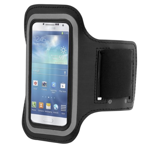 Fascia da braccio per lo sport e il jogging per Samsung Galaxy S4 i9500 / i9505 con porta chiavi e pratica chiusura in velcro in Nero, firmata kwmobile