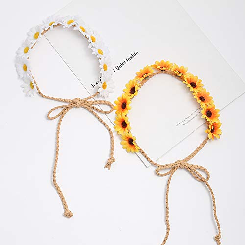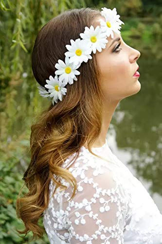 Fascia per capelli con margherite, fiore, corona di fiori hippie, ghirlanda floreale boho, copricapo da sposa, ghirlanda di girasoli per donne e ragazze, matrimoni, festival. bianco bianco
