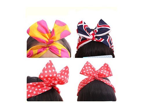 Fascia per capelli con nodo a orecchie di coniglio, con fil di ferro, multiuso, splendida fascia per tanti stili diversi, per donne e ragazze, in colori assortiti, confezione da 10 pezzi