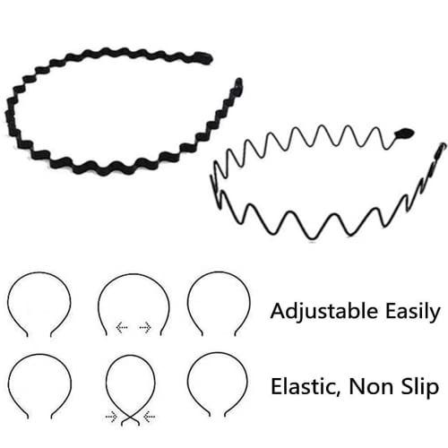 2 Pcs Fascia per Capelli Ondulata, erchietti per Capelli Metallo, Fascia Antiscivolo, Fasce Unisex, per Sport, Jogging, Bagno e Trucco
