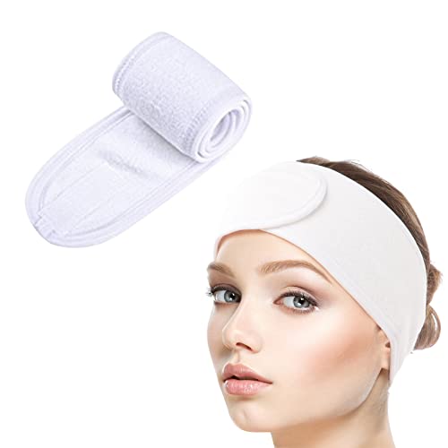 Fascia Capelli Trucco, Fascia Trucco,Fascia Make Up Capelli,Fascia Capelli,Fascia Viso Spa Regolabile con Nastro Magico,Bianco
