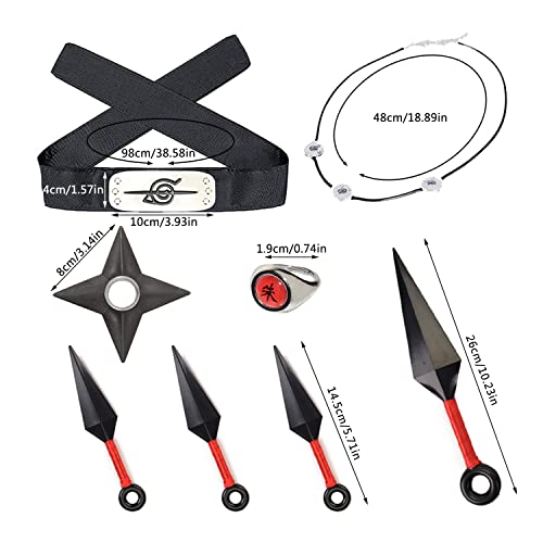 ☆ Contenuto abbonante: 1 anello ZHU, 3 piccoli kunai, 1 Shuriken, 1 grande kunai, 1 ciondolo Uchihala Itachi e 1 fascia anti-Konoha