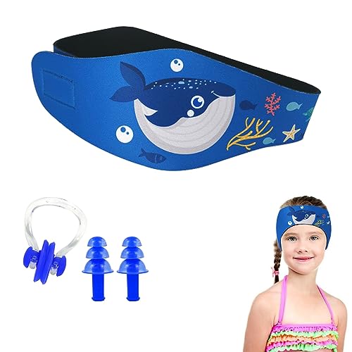 Fascia da Nuoto, Elastica Fascia da Nuoto, Fascia di Protezione per Le Orecchie, Regolabile, con Tappi per Orecchie per Nuoto e Stringinaso di Silicone, per Surf Sci Nautico, Blu, Balena