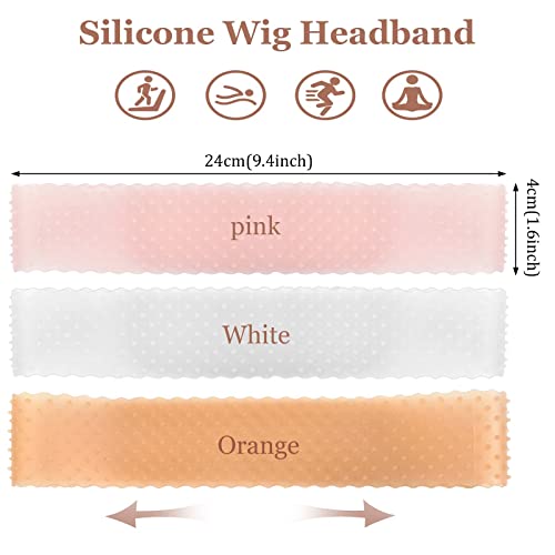 3Pz Fascia per Parrucca, Fascia per Parrucca in Silicone Antiscivolo, Parrucca Grip Fascia, Fascia per Parrucca Mantenere per Parrucca Fissa, Arancione + Rsa + Bianco traslucido