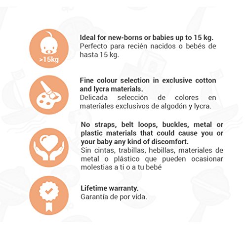 FACILE DA USARE. Taglia unica unisex. Marsupio per nenonati elastico, ideale per mamma e papà. Per la tua tranquillità, il baby wrap è fatto di lycra e cotone per favorire elasticità, comodità e assorbimento degli urti.