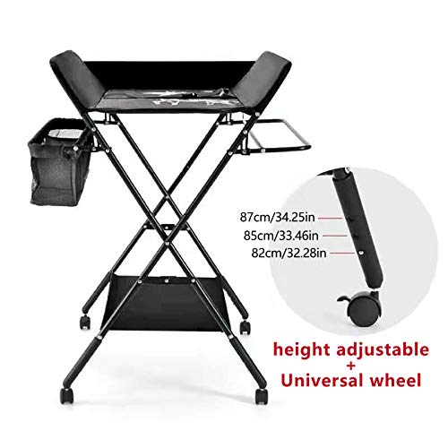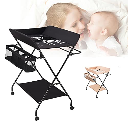 Fasciatoio pieghevole, fasciatoio portatile con 3 ripiani, per bambini, salvaspazio e stabile (nero)