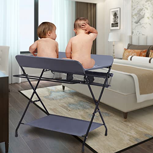 Fasciatoio portatile, fasciatoio, fasciatoio, fasciatoio pieghevole, con cintura di sicurezza e scomparti, salvaspazio e stabile (grigio senza ruote)