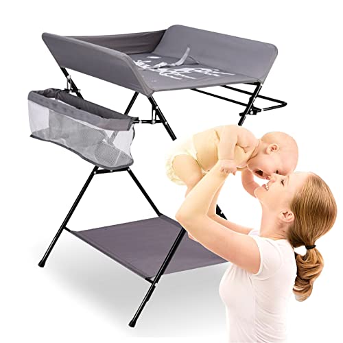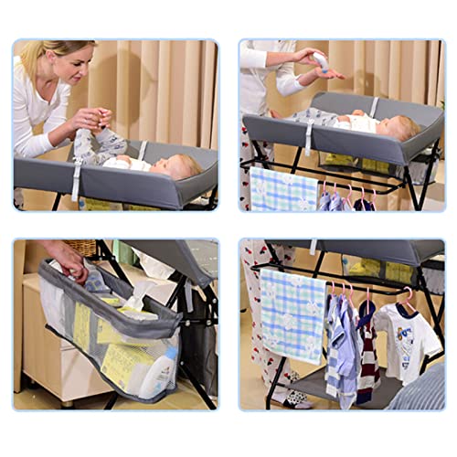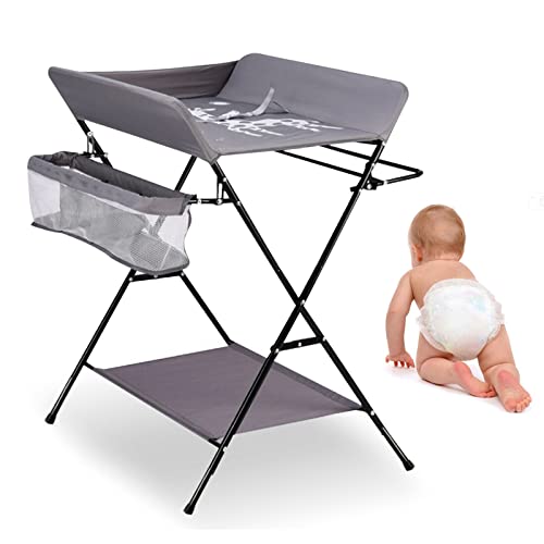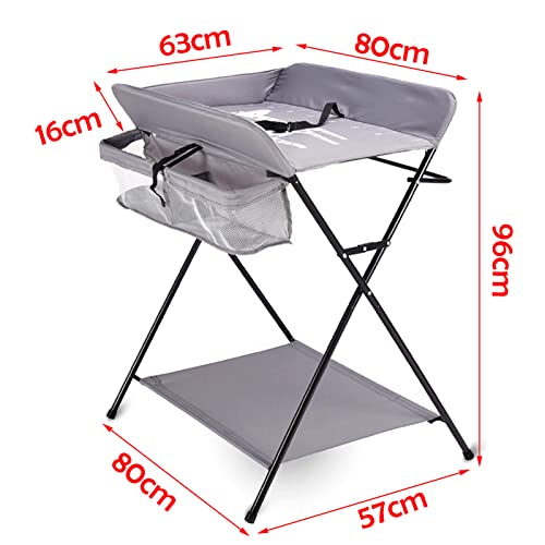 Fasciatoio portatile pieghevole da viaggio, con ripiani pieghevoli, per la cameretta dei bambini, per il massaggio, fasciatoio combinato a 3 scomparti, 25 kg, grigio (senza ruote)