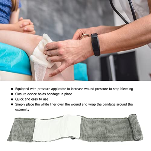 Applicatore di pressione: il bendaggio compressivo di emergenza è dotato di un applicatore di pressione per aumentare la pressione della ferita per fermare l'emorragia e un dispositivo di chiusura per mantenere il bendaggio in posizione.