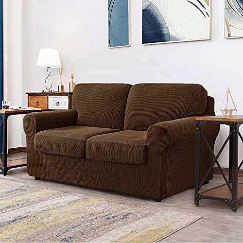 FASCINATDECO Copridivano Elasticizzato 7-Pezzi, Copridivano con Tre Schienali Separati E Cuscini con Fascia Elastica, Tessuto Jacquard Spandex A Quadri (caffè,2 posti (145-178 cm))