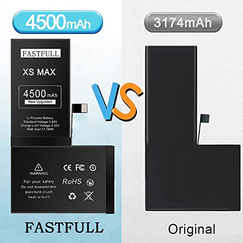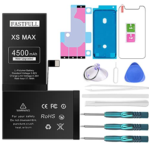 FASFTULL Batteria Compatibile con iPhone XS Max, 4500mAh Alta Capacità Sostitutiva Della Batteria Ricambio in Li-ion Con Kit Strumenti Di Riparazione, Adesivo, Lastra Vetro Temperato-2 Anni Garanzia