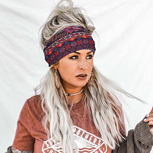 Fashband Boho Fasce Elastiche Donna Fasce per capelli Fiore rosso Fasce per capelli Vintage Criss Cross Head Sciarpa Yoga Accessori per capelli per donne e ragazze