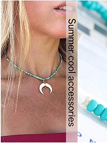 Fashband - Collana con ciondolo a forma di mezzaluna turchese a doppio corno con ciondolo in stile boho, idea regalo hawaiano, spiaggia, estate, per donne e ragazze