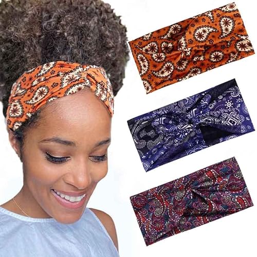 Fashband Fasce per capelli Boho con testa di fiore blu, fascia elastica per capelli incrociata per donne e ragazze (confezione da 3)