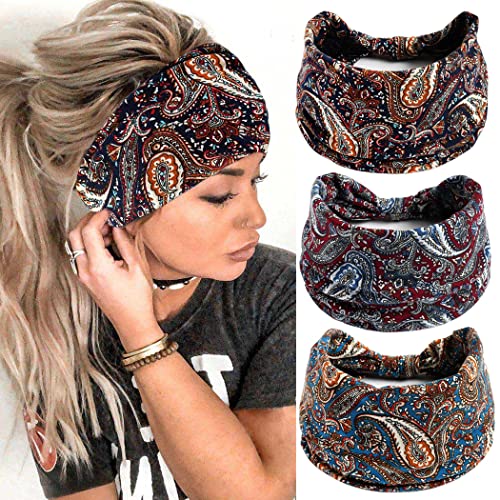 Fashband Fasce Larghe Elastiche per Capelli Vintage Fasce per Capelli con Nodo di Fiori Accessori per Capelli per Donne e Ragazze (Confezione da 3)