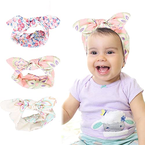 Fashband Fascia per capelli con stampa per bambini Fascia per capelli con fiocco elastica e carina per bambini e neonati (confezione da 3)