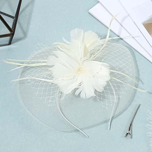 Cappelli in piuma beige diametro del floreale is17,8 cm. Taglia unica adatta alla maggior parte delle donne e delle ragazze. super facile da mettere sulla testa e si può posizionare come si desidera.