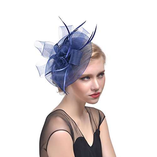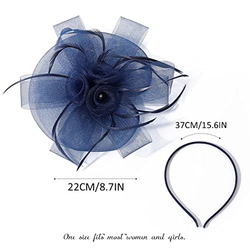 Fashband Fascinators Cappello Feather Mesh Flower Headband con Clip Cocktail Copricapo Wedding Tea Party Royal Ascot Races per Donne e Ragazze(Marina Militare)