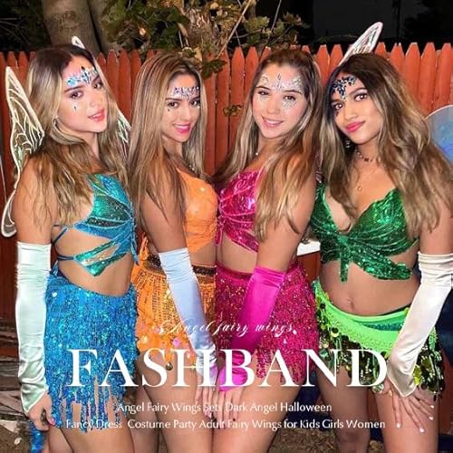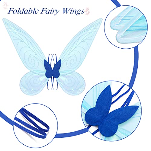 Fashband Ali di Fata Vestire Scintillante Ali Trasparenti Farfalla Fata Halloween Costume Ali d'Angelo per Bambini Ragazze Donne (Blu)