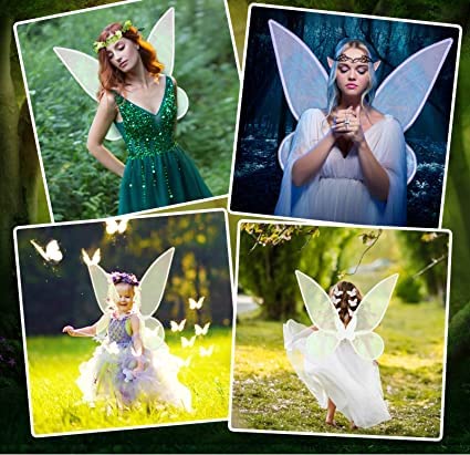 【Materiale Premium】Le ali di fata sono realizzate in organza trasparente, leggera come la seta e il filato, ali di farfalla svolazzanti a destra e a sinistra che lampeggiano in colori da sogno, perfette per bambini e donne.