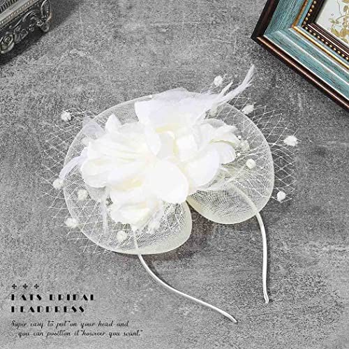 Fashband Feather Fascinators Cappello Flower Headband Clip Mesh Cocktail Copricapo Tea Party Matrimonio per Donne e Ragazze(Beige)