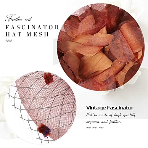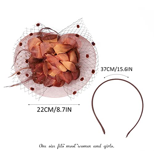 Fashband Feather Fascinators Cappello Flower Headband Clip Mesh Cocktail Copricapo Tea Party Matrimonio per Donne e Ragazze(Marrone)