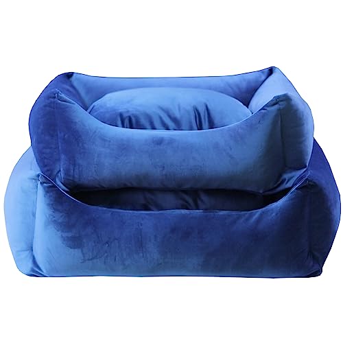 FASHION ANIMALS Divanetto, Letto, Cuccia in Pregiato Velluto, interamente Sfoderabile per Cani, Gatti, Made in Italy (M, Blu)
