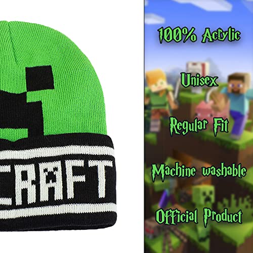 Fashion UK Berretto Minecraft Creeper Modello Verde Logo e Scritta. Acrilico. Taglia Unica per Adulti Ragazzi. Ufficiale.