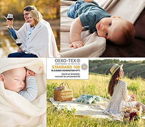 Fashion & Joy - Coperta morbidissima in flanella, facile da lavare, non lascia pelucchi, disponibile in 2 misure, certificazione ÖKOTEX, Poliestere, sabbia, HxB 240x220 cm