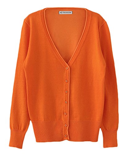 AJ FASHION Donna Colletto Con Bottoni Manica Lunga Scollo A V Basic Cardigan Lavorato A Maglia Maglione