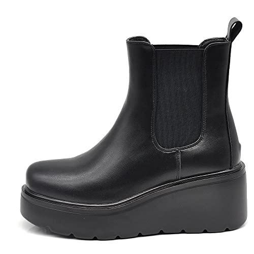 IF FASHION Stivali Stivaletti Scarpe Chelsea da Donna Platform Elastico Zeppa Q763 nero N.36