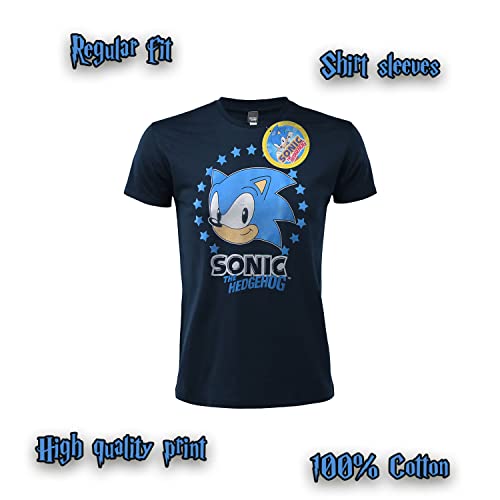 Fashion UK T-Shirt Sonic Ufficiale Modello The Edgehog Cotone Maniche Corte Blu Navy Unisex Taglie per Bambini (5-6 Anni)