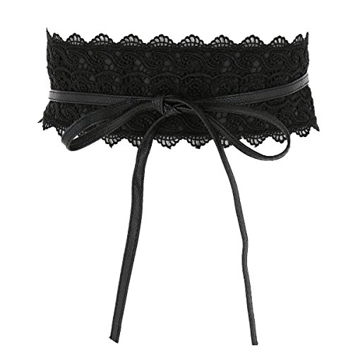 FASHIONGEN - cintura di finta pelle Obi pizzo nastro FLORITA - Nero, L-XL