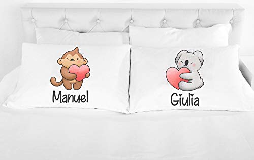 Fashwork Coppia di federe matrimoniali Divertenti Personalizzabili Orsetto Koala Love Regalo SanValentino Anniversario Matrimonio Innamorati Simpatiche